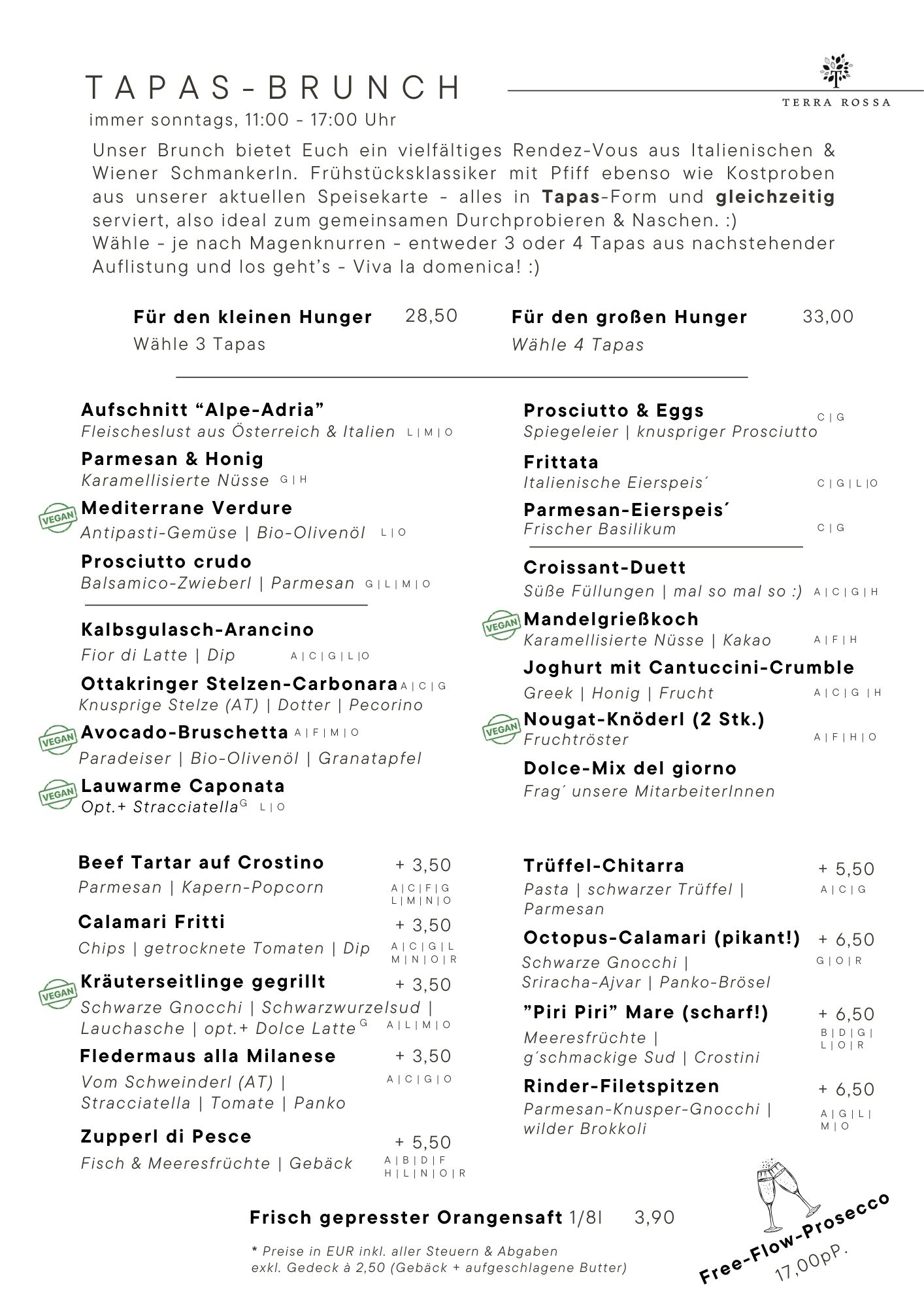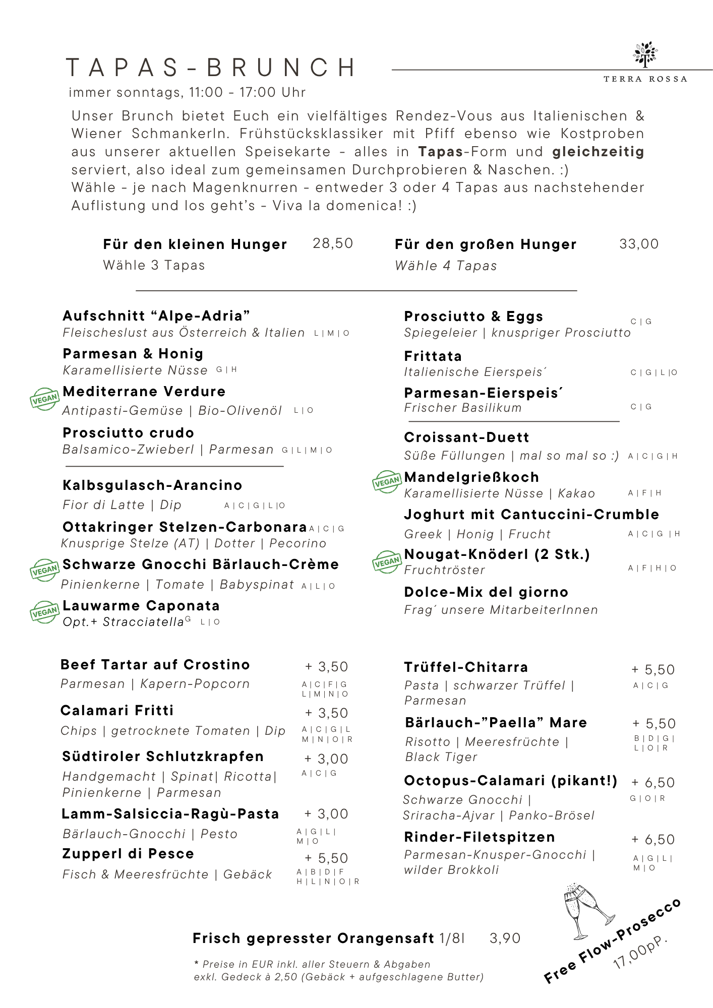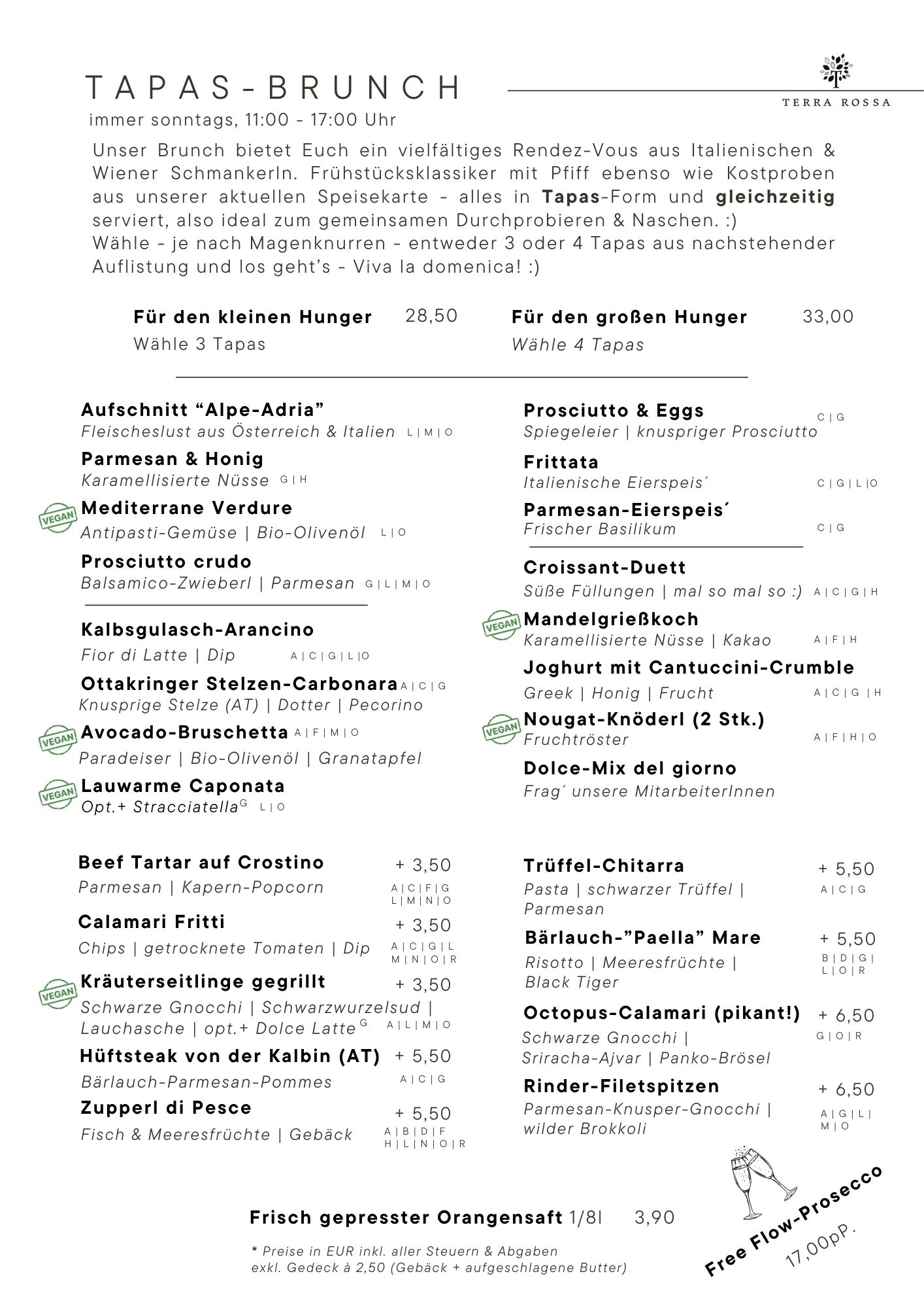 Alle Preise in EUR & inkl. aller Steuern & Abgaben, exkl. Gedeck.